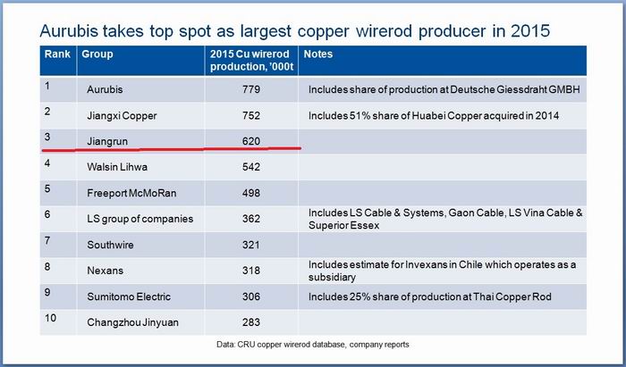 江潤(rùn)銅業(yè)進(jìn)入全球銅桿生產(chǎn)商前三甲